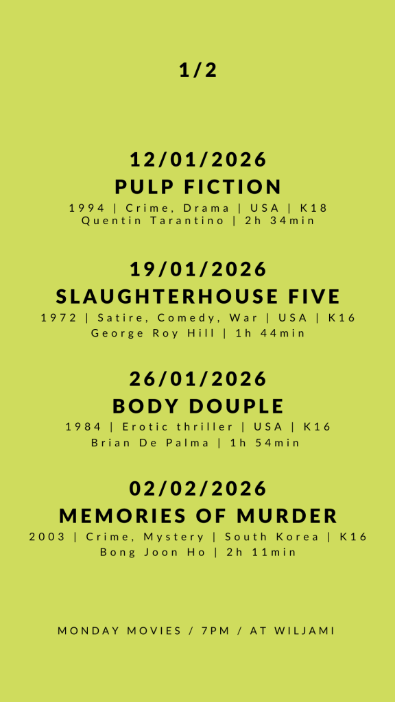 Rovaniemen Cinema kicks off the week with a variety of cinematic gems. Get your membership, grab some snacks, and head to Wiljami. We don’t sell tickets to Monday movies; entry is with a membership card only. Memberships are available at the door before the film (€10/€20; cash or card).